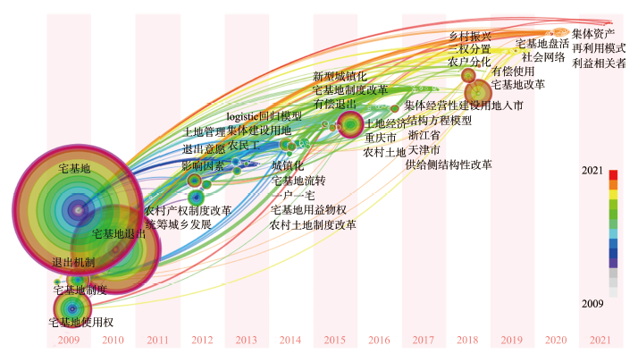 图1 2009—2021年宅基地退出与再利用关键词共现时区图 |