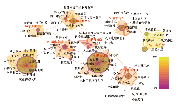 图2 2009—2021年宅基地退出关键词共现聚类图谱 |