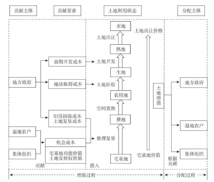 图1 宅基地退出增值的形成及分配主体的贡献 |