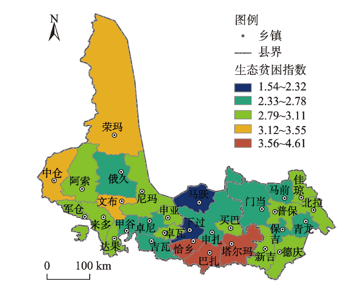 Figure 3 Spatial distribution of ecological poverty index in the Selinco area |