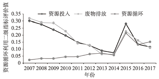 图4 2007—2017年资源循环利用系统的综合发展评价二级指标 |